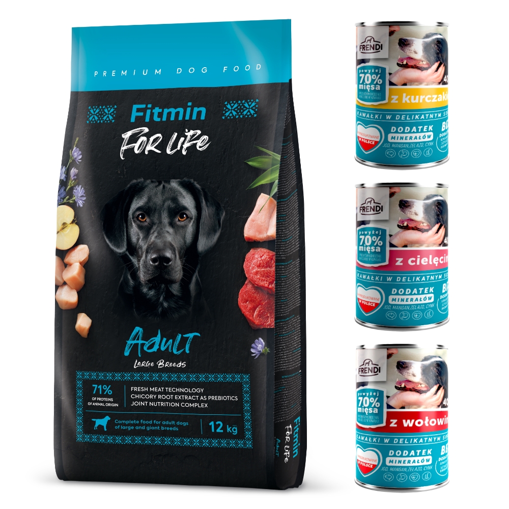 Fitmin For Life Adult Large Breed dla dużych ras 12 kg + 3 puszki karmy Frendi